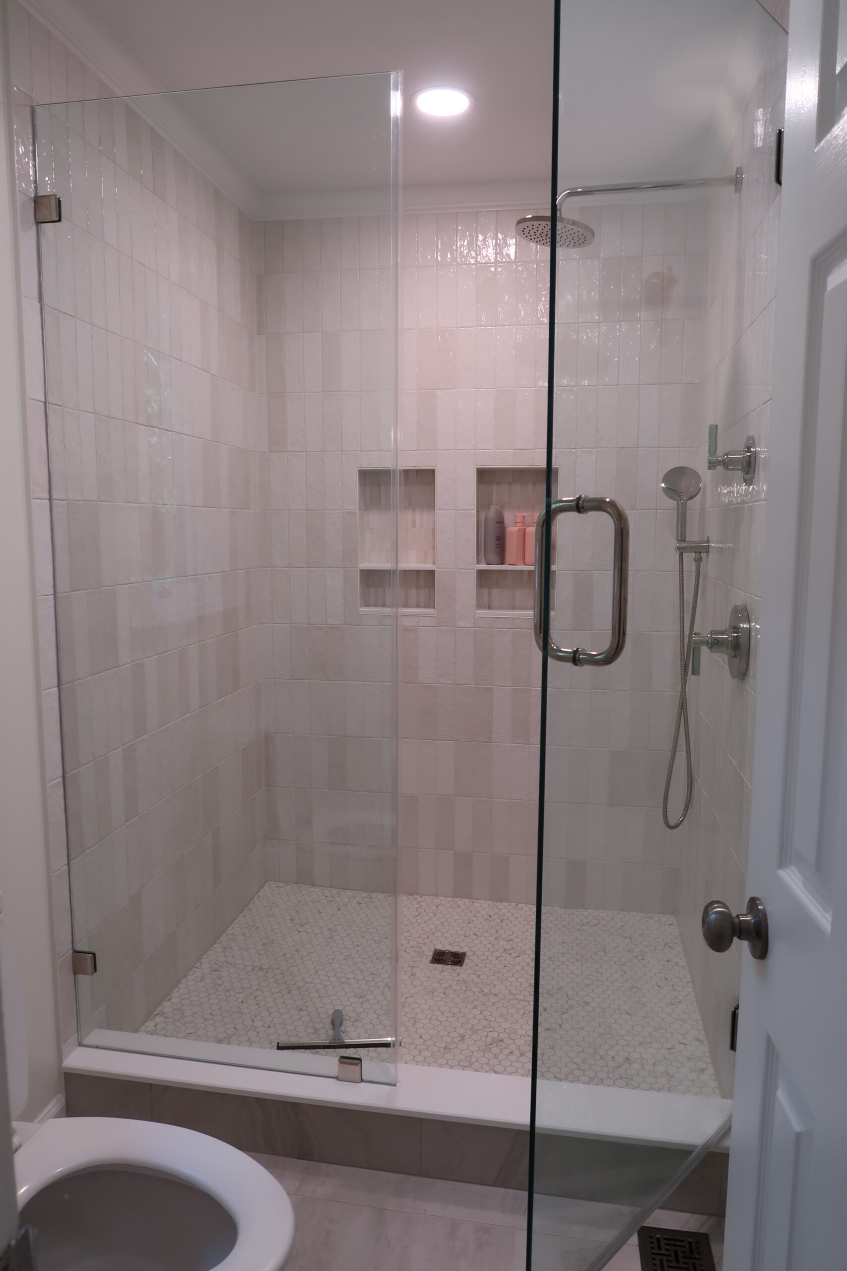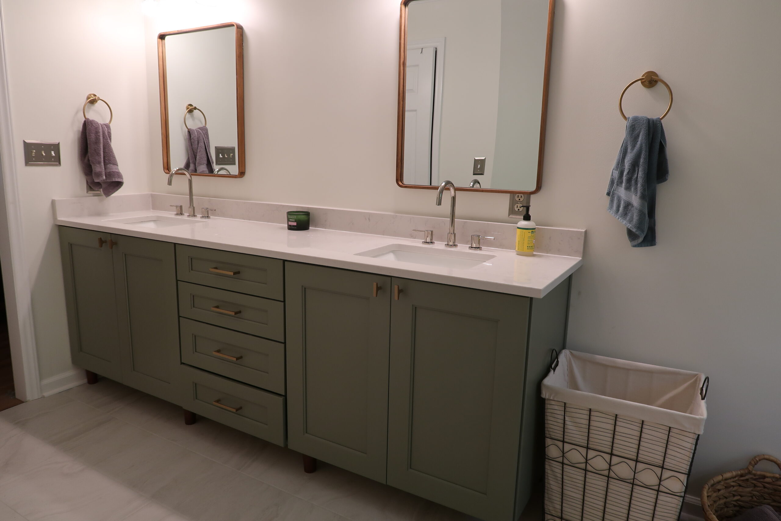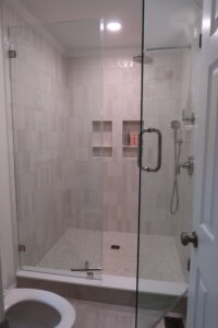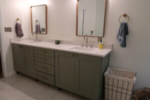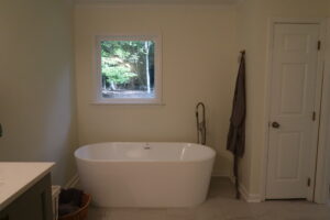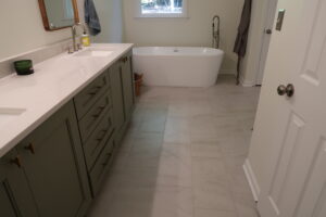 The heart of our project was the master bathroom remodel. We brought new life to the space with a complete overhaul – from a stunning his-and-hers vanity with quartz countertops to a luxurious freestanding tub. The outdated plastic shower insert made way for a spacious, tiled haven complete with his-and-her niches. The addition of new lighting elevated the ambiance, turning the master bath into a sanctuary.
