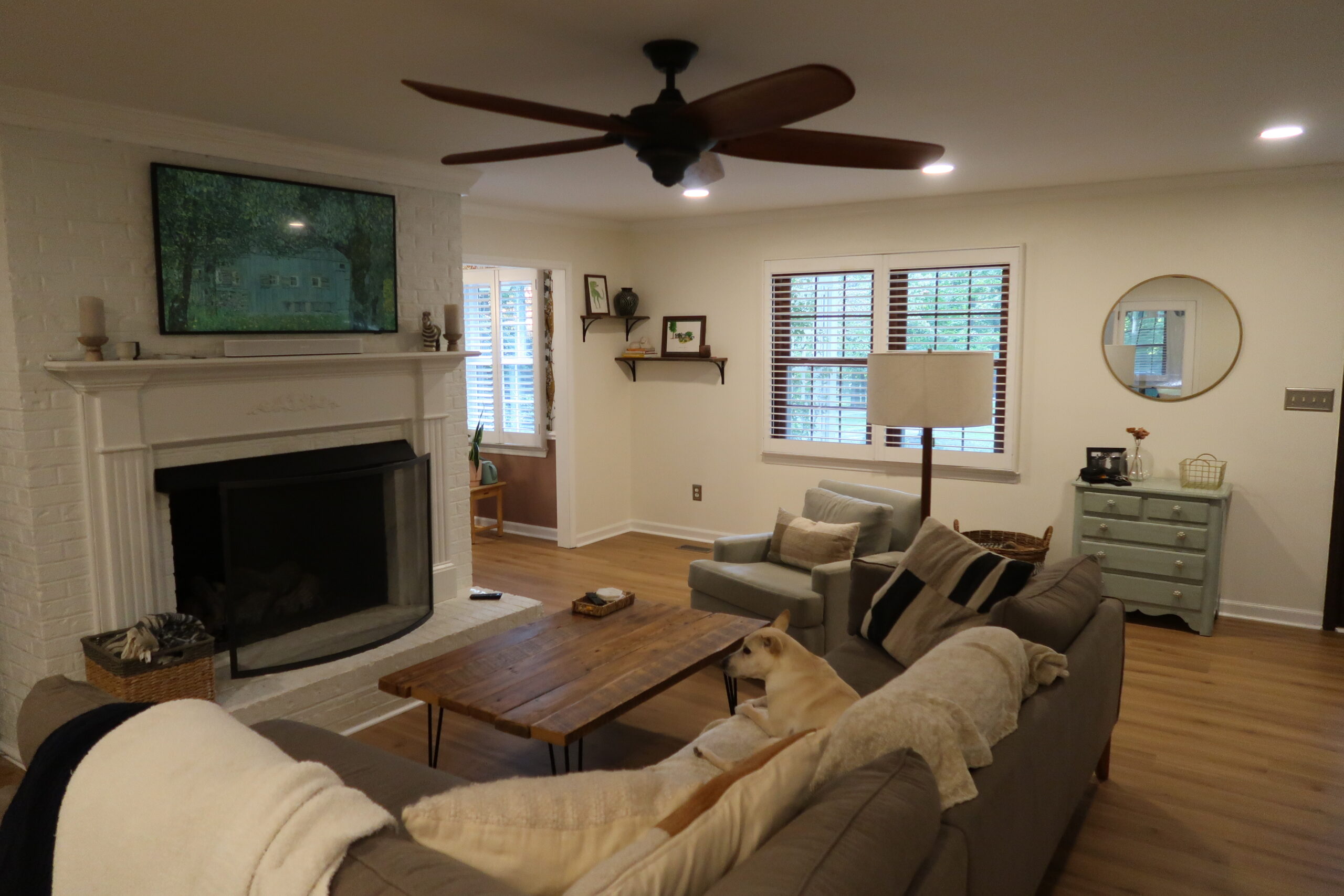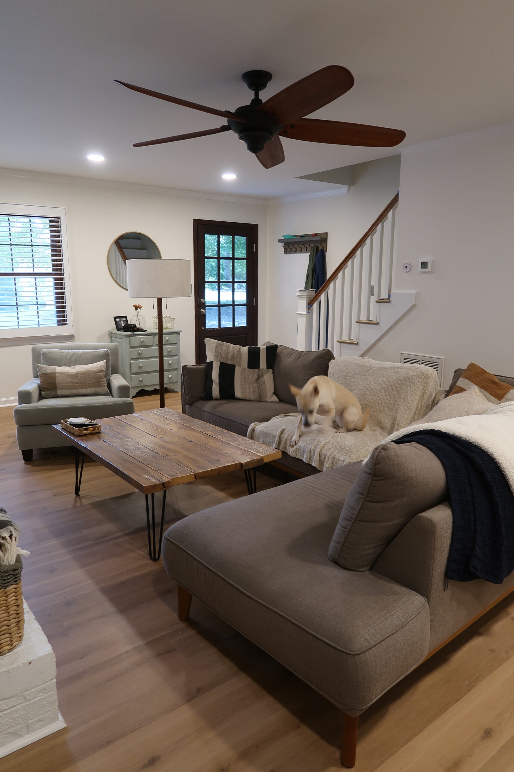 The water damage prompted us to refresh the entire first floor. New floors seamlessly replaced the worn-out ones, and carefully chosen light fixtures illuminated every corner. A fresh coat of paint transformed the space, creating a vibrant and inviting atmosphere.